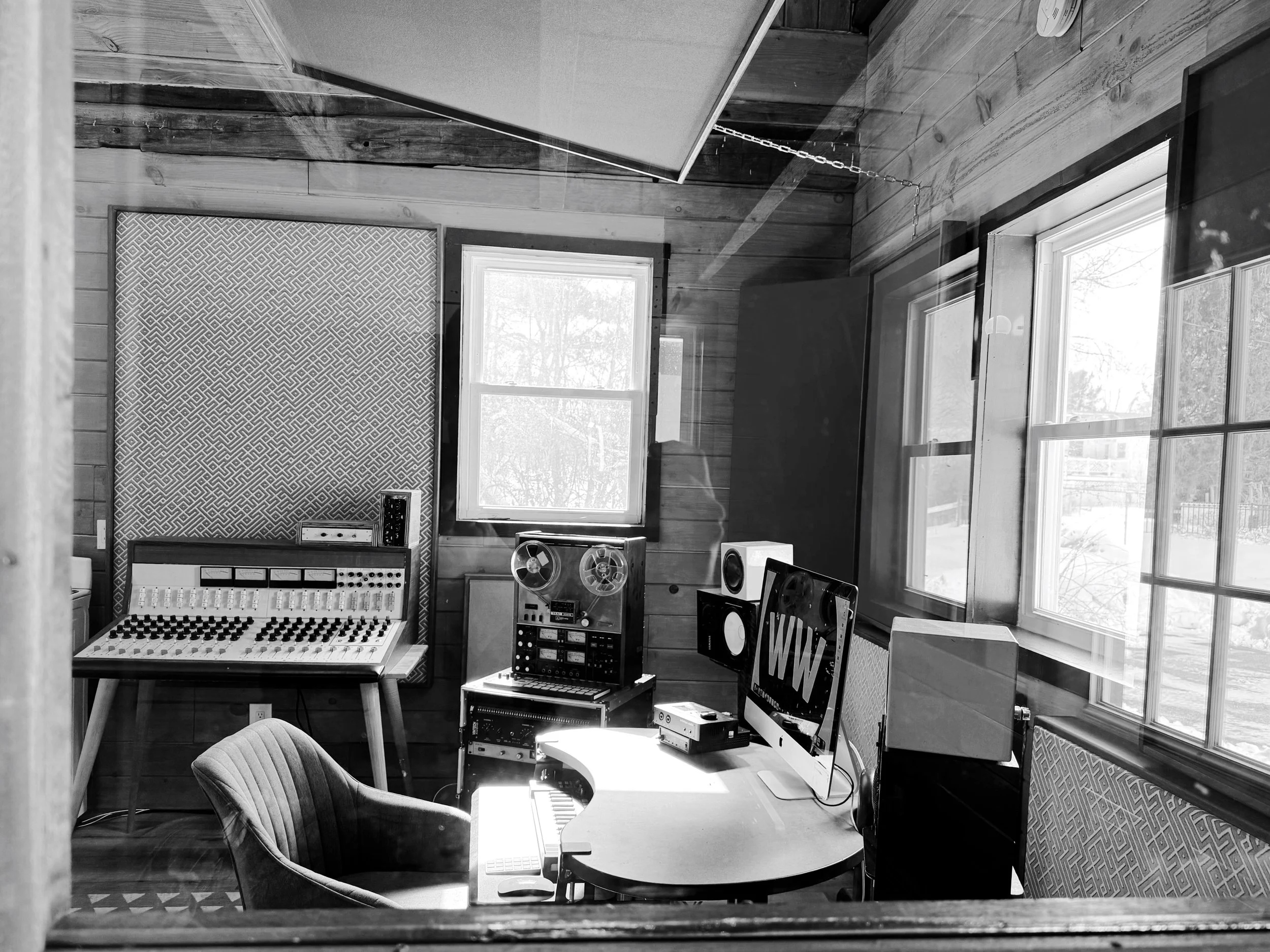 Studio B is a perfect spot for creativity within limits. Tons of natural light in the control room & booth. Giant, 18 foot ceilings. A thorough suite of acoustic treatments made from sapele mahogany ensuring a symmetrical and controlled listening environment.
